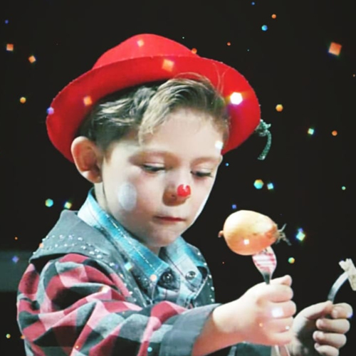 steht als Clown Paulina in der Manege. Mutig und spektakulär versucht sie sich als Domteur ihres Stoff-Leoparden 'Marcel' und zeigt in der Mit-Mach-Runde den anwesenden Kindern wie man jongliert.